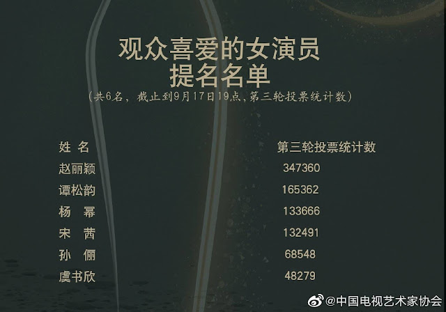 Cập nhật ngày 29/9 hạng mục Nữ diễn viên được khán giả yêu thích nhất giải Kim Ưng lần thứ 30